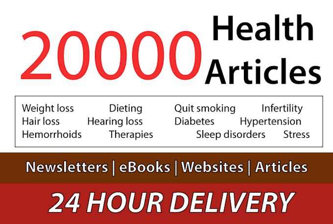 Get 20,000+ health related articles for your website. These are created in 2017 and will be a jump starter for your newsletter. You do not need to write content as you can copy and paste these articles to create your newsletter or eBook.